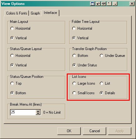 There is no "List Icons" option on mouse right-click in "FTP browser" and "Local browser"