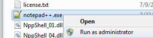 Right click on Notepad++ (or your preferred text editor) and select Run as Administrator.