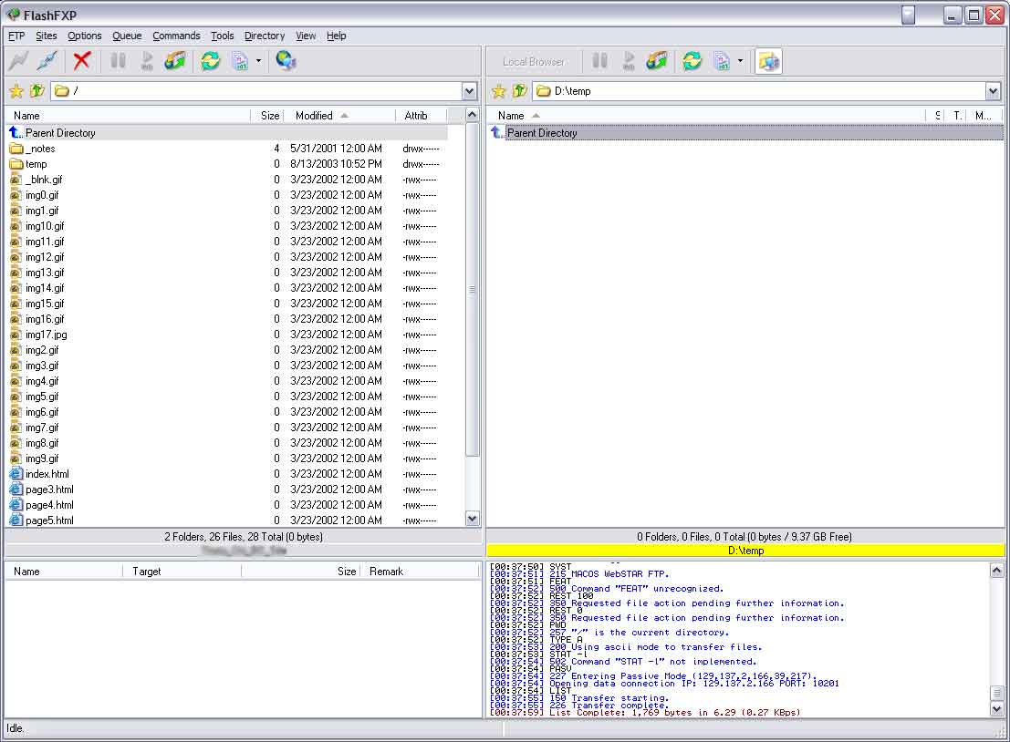 I have tried what seems like every combination of PASV/IPMASQ/ and other switches to get Any version of flash fxp to work with a MacOS Ftp server called webstar. I can login fine, but when it comes to listing the home dir, i get all the file names, but they are all of zero file size. now I can use any other ftp application and the correct file sizes are listed with the default options enabled.