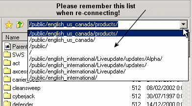 When browsing through directories inside a site, the drop-down list of folders shows the "last visited" directories of the site.